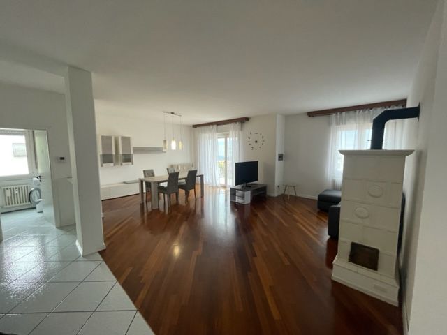 Vendiamo incantevole appartamento ristrutturato, situato al secondo piano di un elegante edificio con ascensore. Con una superficie commerciale di 140 m² e 105 m² calpestabili, offre ampi spazi per vivere al meglio. Il soggiorno luminoso, con splendida stufa ad olle, si apre su un balcone panoramico, perfetto per godere di momenti di relax. La nuova tenda da sole elettrica aggiunge un tocco di comodità e stile.
